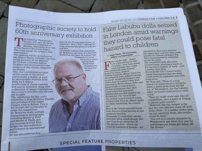 In September 2025 I was hugely privileged and honoured to judge the Gibraltar Photographic Society’s 60th Annual Print Exhibition. My wife and I had a full week of activities in Gibraltar during our stay, our last time performing this role having been 9 years earlier in 2016.