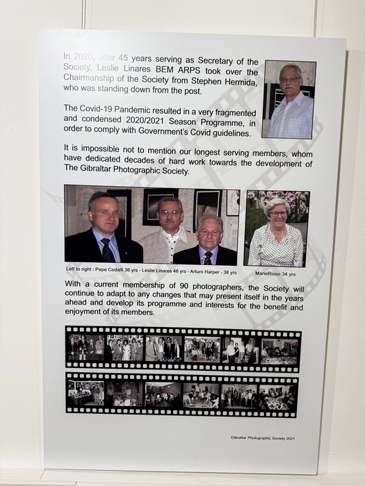 In addition I was honoured to do a presentation of my own prints to the society at its club premises, where I displayed large 50x40cm unmounted prints, all on Fotospeed paper. All the prints were then presented to individual club members at the celebration dinner at the Royal Gibraltar Yacht Club. I was also very pleased to present the club with a framed portrait print of their esteemed former President, Arthur Harper LRPS that I took on my previous visit. Sadly Arthur is no longer with us, having passed away in December 2022.